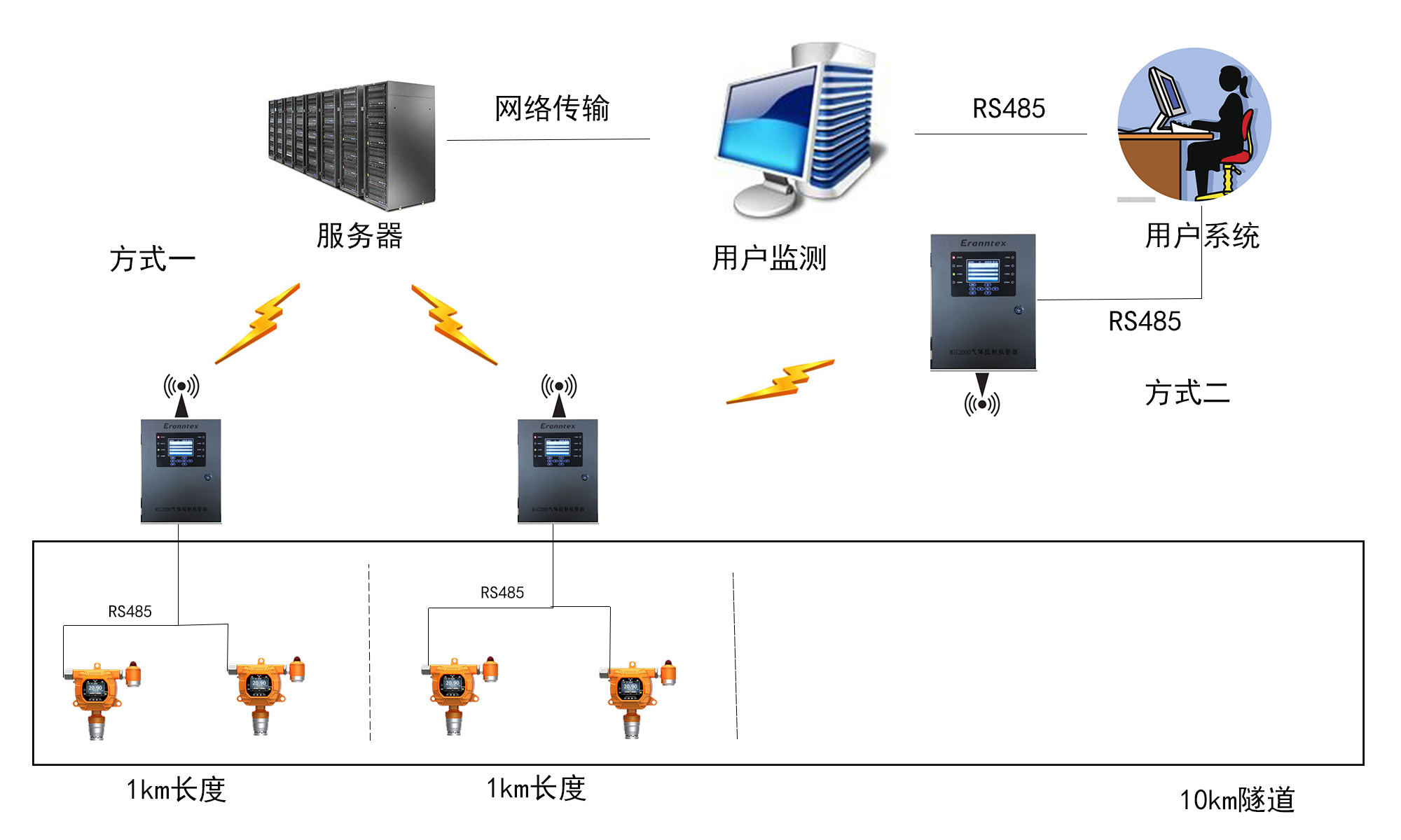 我公司國內首創在線復合式氣體檢測儀,可通過一臺儀器同時檢測CH4,CO,O2,H2S,CO2,溫濕度等,并可兼容有線和無線傳輸方式。