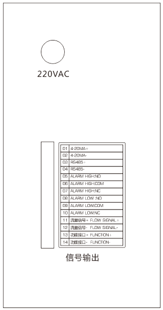 (04)RS485- 通訊接口 | (11)流量信號(hào)+ FLOW SIGNAL+ 產(chǎn)量計(jì)算流量信號(hào)接入 |