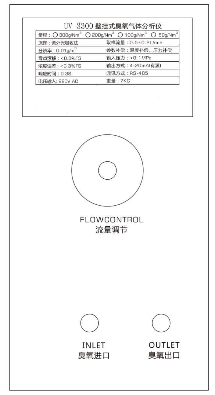 0-300g/Nm3 | 正壓取樣,帶有壓力,溫度補(bǔ)償 | 臭氧發(fā)生器出口濃度實(shí)時(shí)檢測(cè)。 |