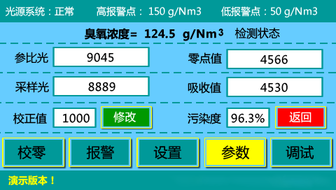 內(nèi)容界面:臭氧濃度、溫度、壓力;